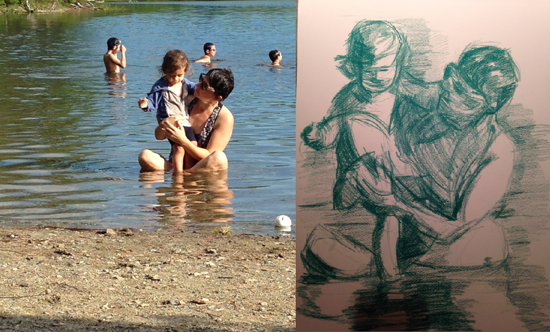 The smell of rain, the floating in it, the slipperiness of our bodies swimming in it. The way that floating with ears under the surface mutes all sounds except my own heartbeat and blood flow. The way we gather around it, flock to it, retreat at it and in it. The way that it causes me to slow down and focus on just being in it. The childhood memories of meeting at it with special people. Learning to steer the canoe and– to anxiously, then exuberantly – land the canoe just right onto the sand to dock at the “Big Rock” to jump in, over and over, laughing and shouting. The way that lying in the ocean, floating on top, parallel with the waves and shore lends its rhythm, rocking and never stopping, even when we go away from it. Watching my baby girl step into a tidal pool or lean down over a shallow creek or the lake’s shore to examine the landscape below the water with a fierce and unforced concentration. The way that a day on the water, fishing, is a destination vacation for my partner, and a true retreat. Skipping rocks and having someone watch the many skips with you. The reflection of fall’s golden sun and the rainbow of fall leaves on a mirror-like surface. The haunting call of loons.