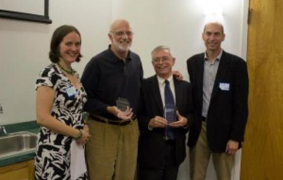 Ken Geiser (second from right) and Richard Clapp (second from left) receive Lifetime Achievement awards presented by Clean Water Action Massachusetts Director, Elizabeth Saunders, and Joel Tickner, Professor of Work Environment at UMass Lowell. By Elizabeth Saunders, Massachusetts Director This