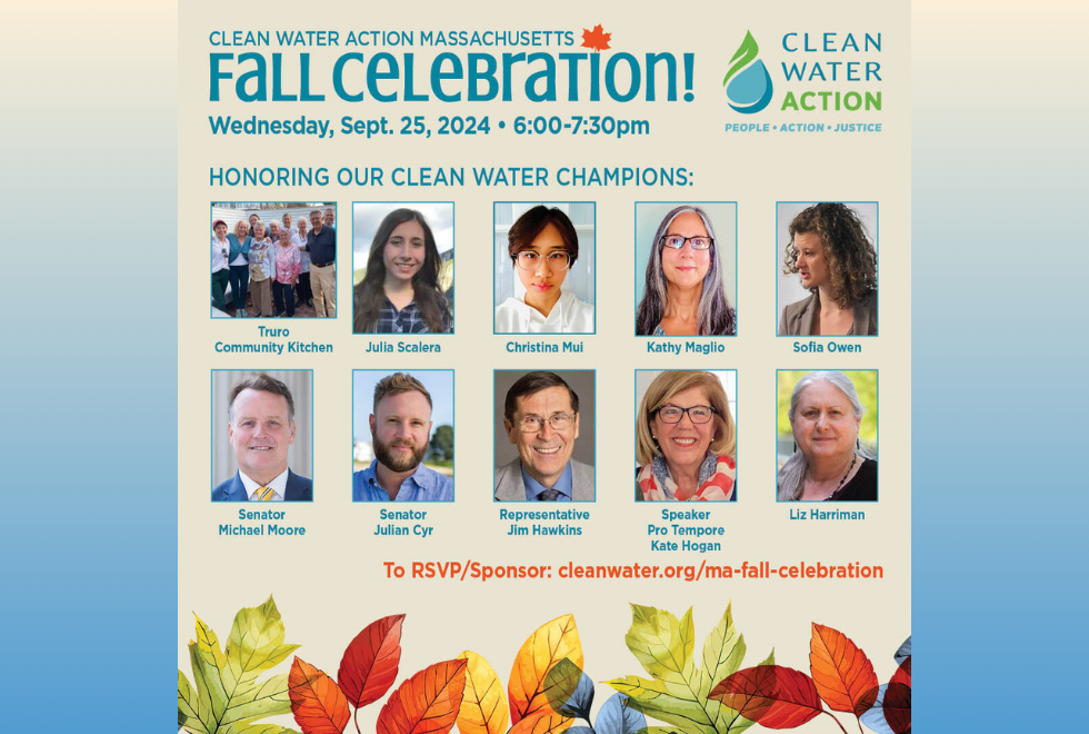 BOSTON: Clean Water Action today announced their 2024 class of environmental champions, including four state legislators. They will be honored at the organization’s 2024 Fall Celebration, September 25th, at the Charles River Museum of Industry and Innovation. Massachusetts Climate Chief, Melissa Hoffer, will be delivering the keynote address.