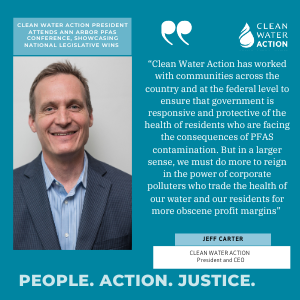 “Clean Water Action has worked with communities across the country and at the federal level to ensure that government is responsive and protective of the health of residents who are facing the consequences of PFAS contamination,” said Clean Water Action President and CEO, Jeff Carter. “But in a larger sense, we must do more to reign in the power of corporate polluters who trade the health of our water and our residents for more obscene profit margins.”