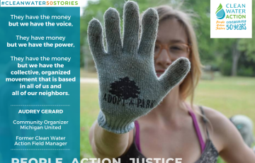 "My name is Erik McCleary, I’m the Southeast Michigan Program Organizer for Clean Water Action. We represent over 135,000 Michigan residents who value our Great Lakes and don’t want to see them continue to be put at risk for an oil company’s profits."
