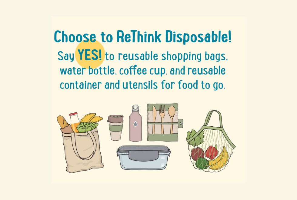 Take the ReThink Disposable pledge today to commit to reducing the amount of single-use plastic disposables we use! With your help we can reduce the amount of trash that ends up in our waterways, environment, ocean and communities!